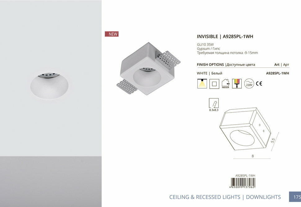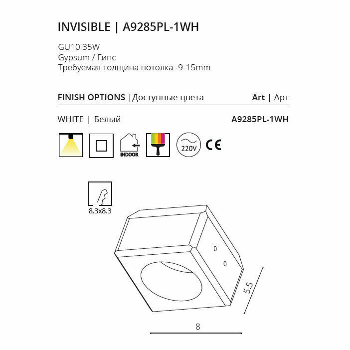 Светильник встраиваемый INVISIBLE A9285PL-1WH