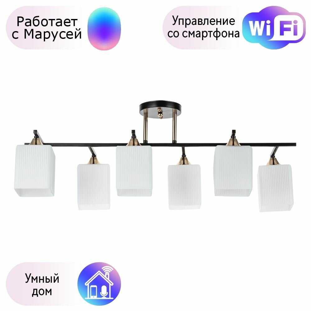 Люстра Arte Lamp A4071PL-6BK Merope, E27, 240 Вт, кол-во ламп: 6 шт., цвет арматуры: черный, цвет плафона: белый
