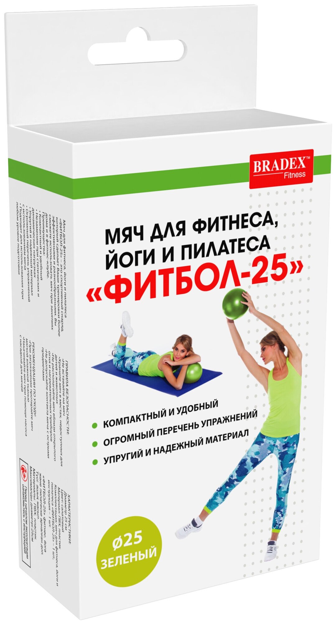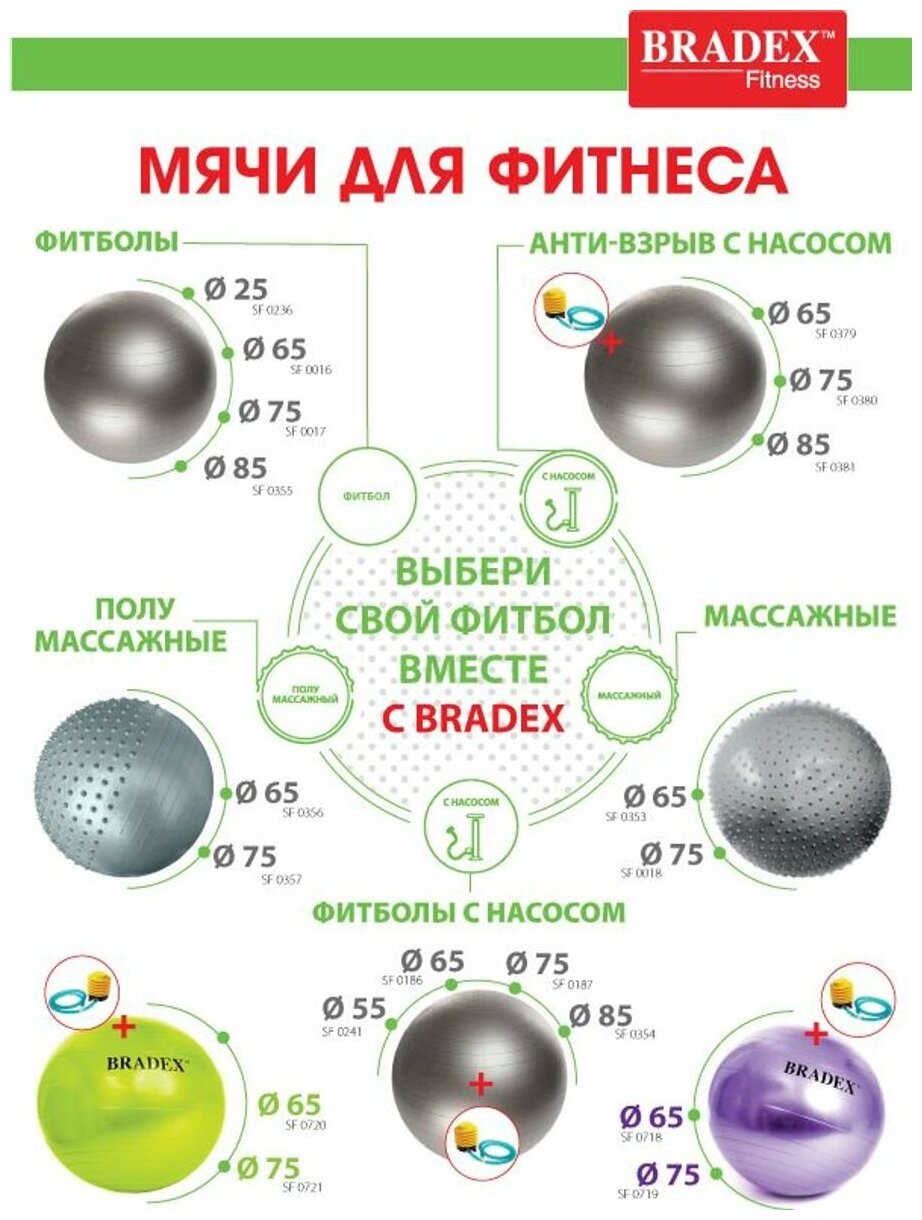 Мяч для фитнеса, йоги и пилатеса «ФИТБОЛ-25» Bradex SF 0822 салатовый интересное: