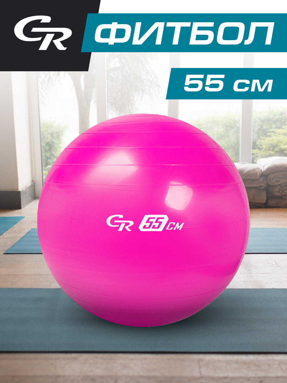 Мяч гимнастический CITYRIDE, фитбол, для фитнеса, для занятий спортом, диаметр 55 см, ПВХ, розовый, JB0210531
