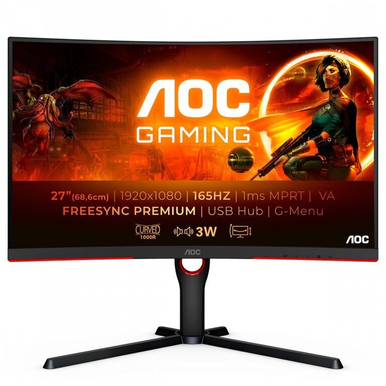 Монитор AOC 27" Gaming C27G3U VA 1920x1080 165Hz FreeSync Premium 250cd/m2 16:9