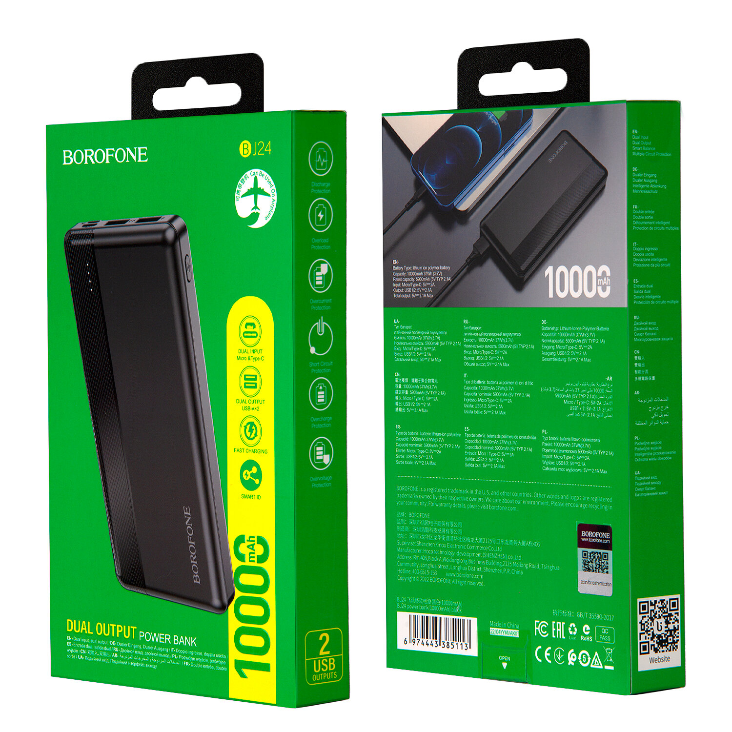 Аккумулятор Power Bank внешний Borofone BJ24, 10000mAh чёрный
