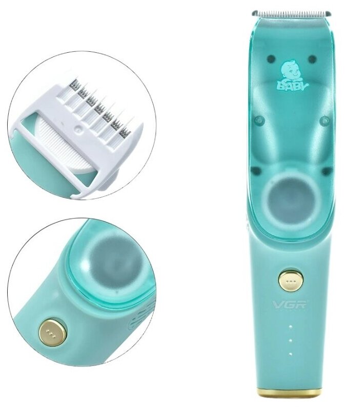 Машинка для стрижки волос у детей с функцией всасывания волос, бесшумная VGR V-151. голубой