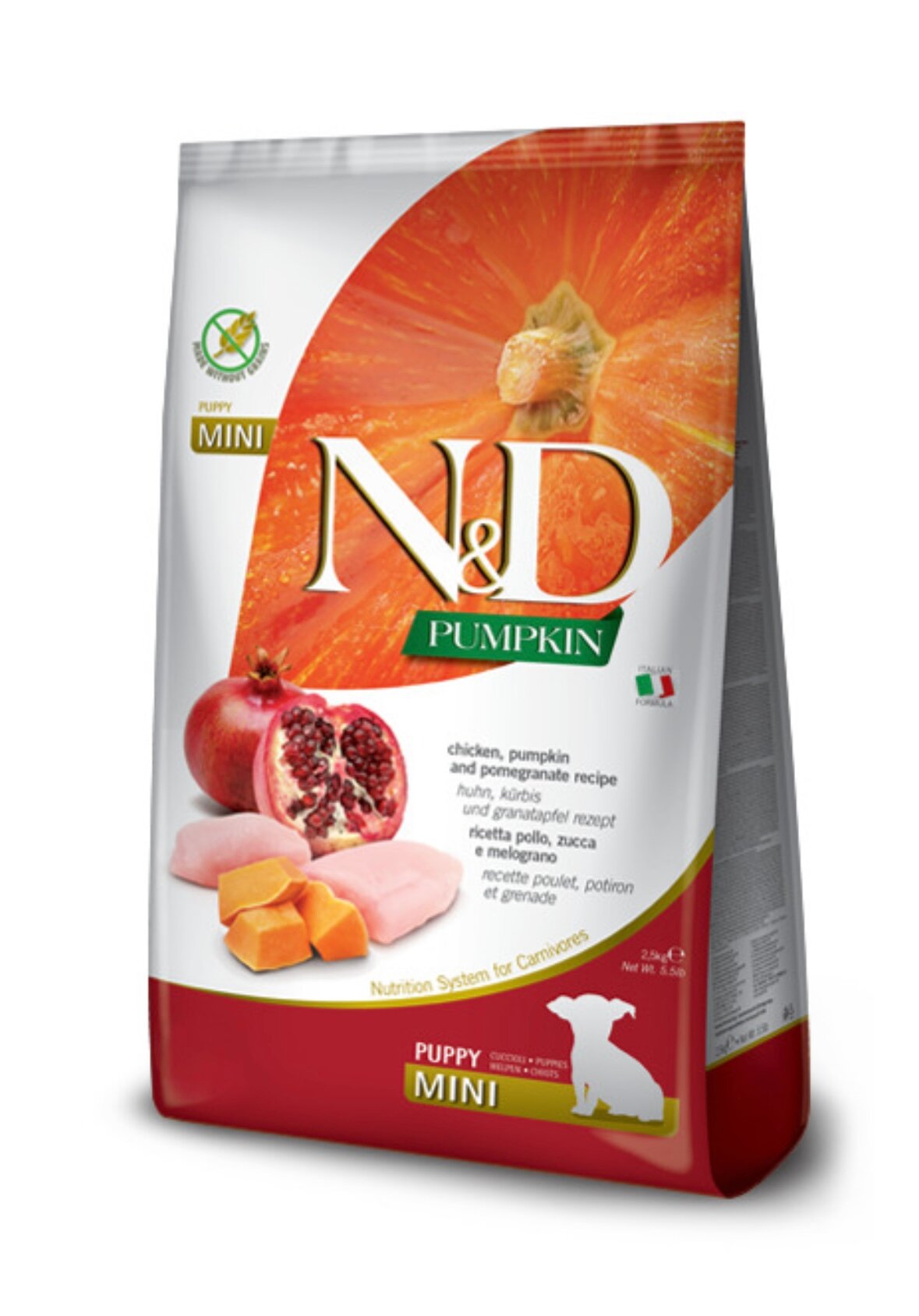 FARMINA DOG N&D GRAIN FREE PUMPKIN PUPPY MINI CHICKEN & POMEGRANATE беззерновой для щенков маленьких пород с курицей, гранатом и тыквой (2,5 кг)