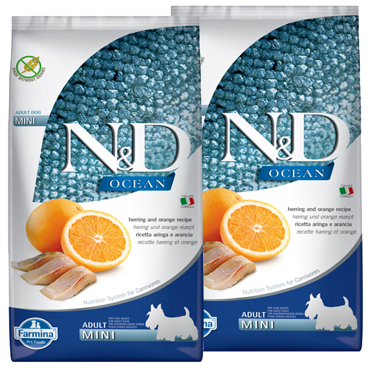 FARMINA DOG N&D OCEAN ADULT MINI HERRING & ORANGE беззерновой для взрослых собак маленьких пород с сельдью и апельсином (0,8 + 0,8 кг) интересное: