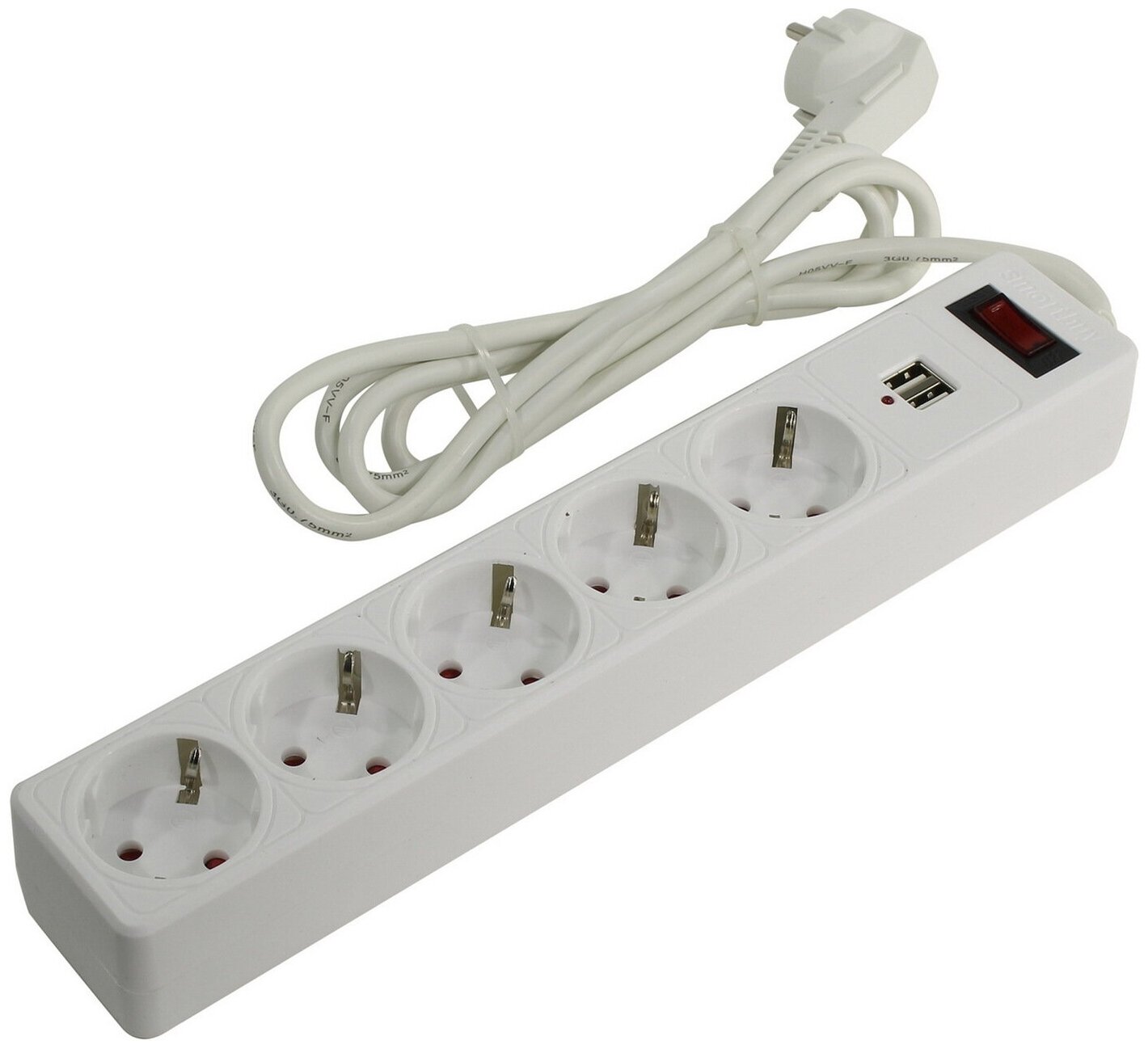 Сетевой фильтр с USB Smartbuy, 10А, 2 200 Вт, 5 розеток, длина 1,8 м, белый
