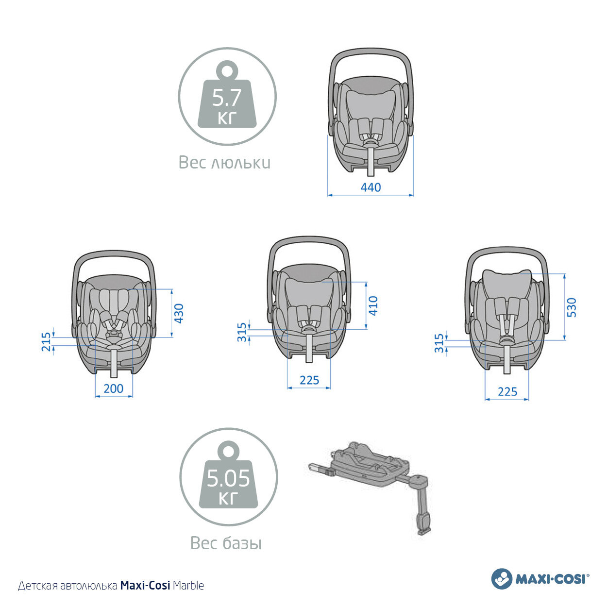 Автокресло группы 0+ (0–13кг) Maxi-Cosi Marble with base