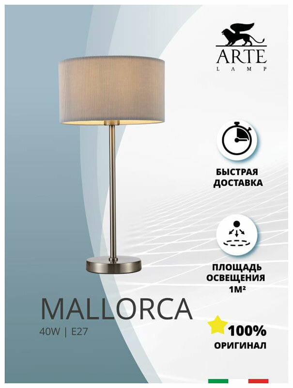 Настольная лампа Arte Lamp Mallorca A1021LT-1SS, E27, кол-во ламп:1шт, Серебро