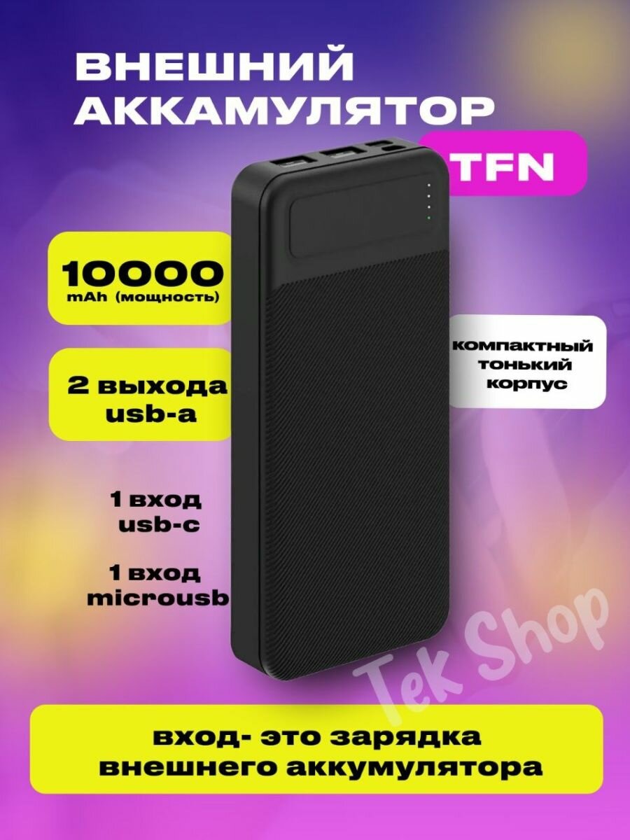 Ниже Вы можете прочитать отзывы на Внешний аккумулятор Tfn TF N-PB-288-BK 10 000 мач, Power Aid PD 10, черный, ознакомится с подробными характеристиками, посмотреть интересные обзоры и фотографии на Внешний аккумулятор Tfn TF N-PB-288-BK 10 000 мач, Power Aid PD 10, черный.