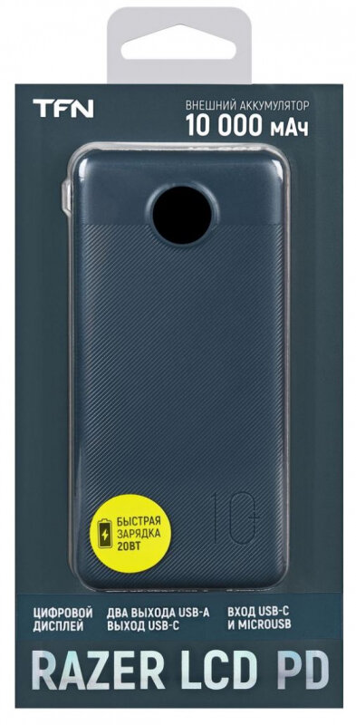 Аккумулятор TFN Razer LCD PD 10000mAh blue