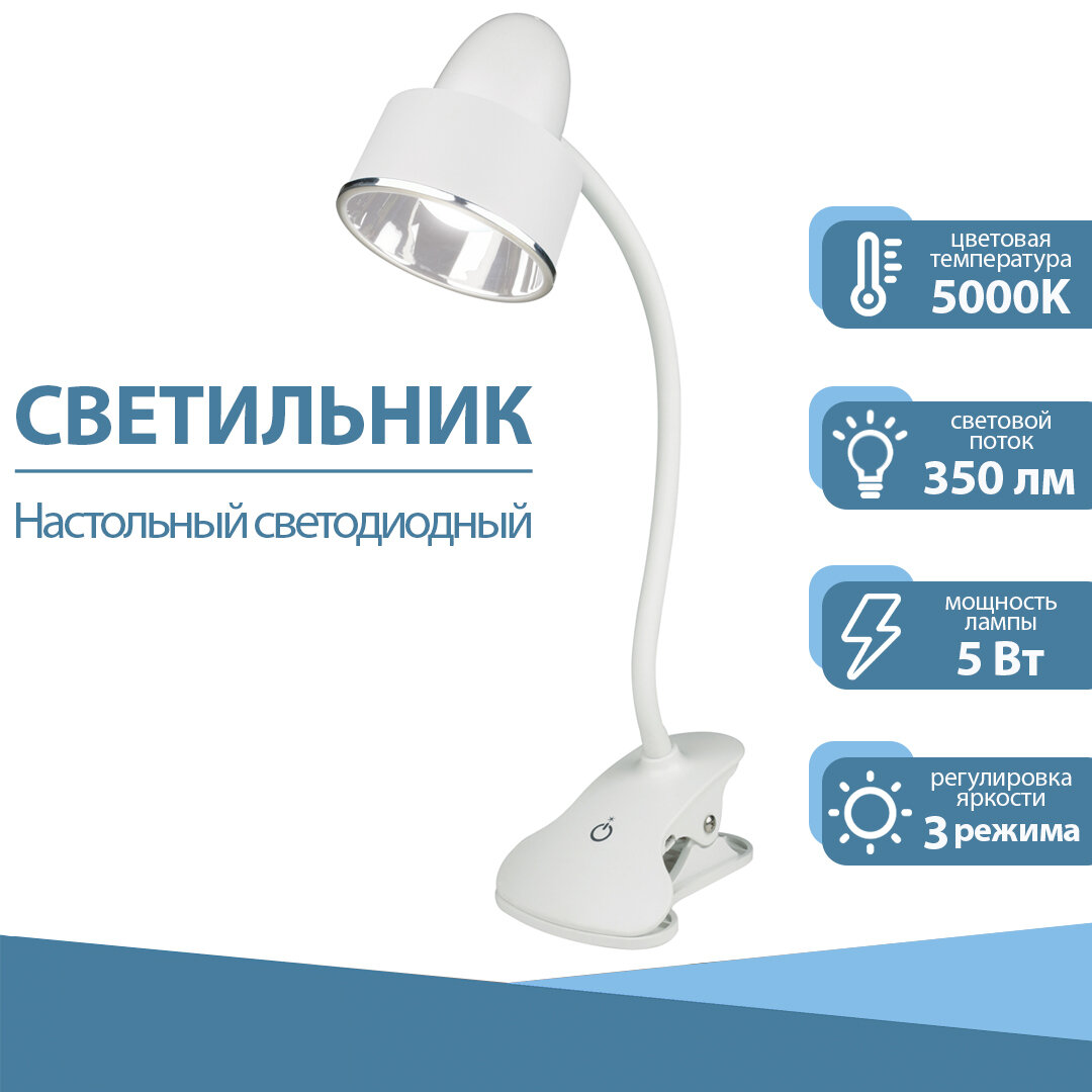 Светильник настольный прищепка Uniel TLD-557 5W 350Lm 5500K белый