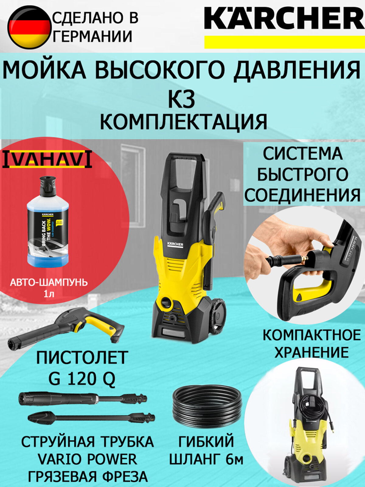 Мойка высокого давления Karcher K 3 1.601-888 + подарок шампунь 1л интересное: