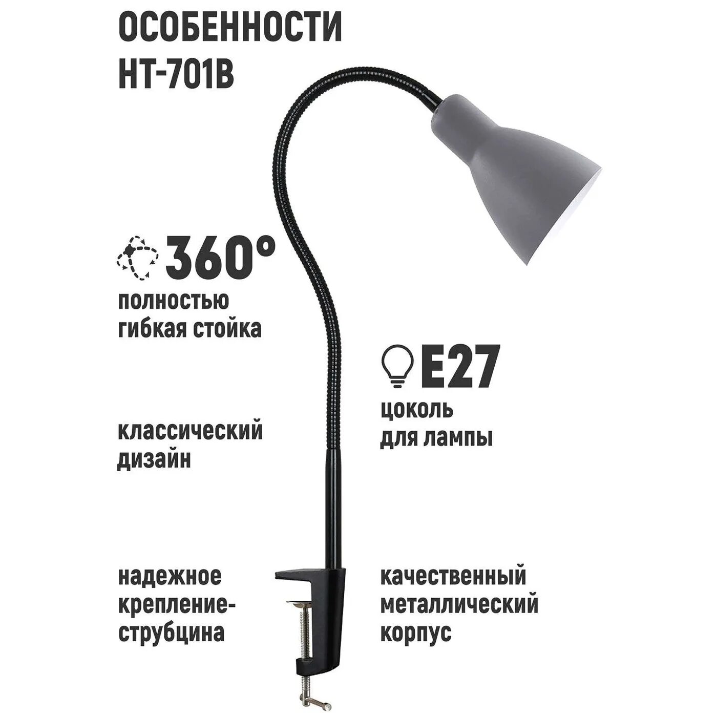 Светильник настольный на струбцине Ht-701gy, Artstyle, серый (песок), металлический, E27 .