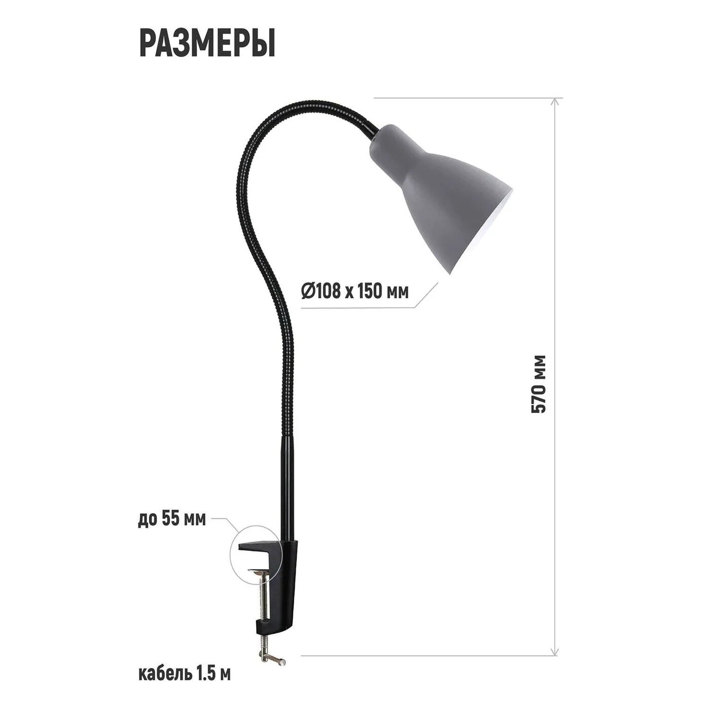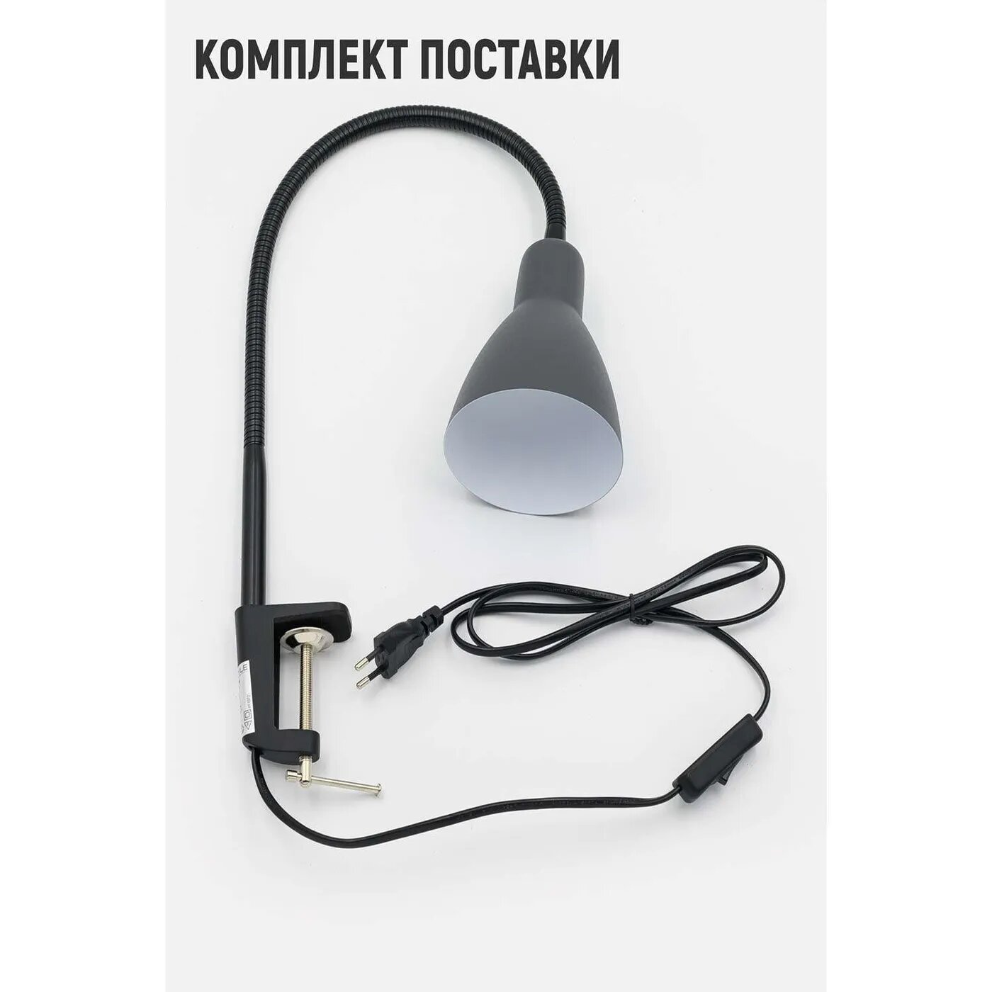 Настольный светильник на струбцине, черный, цоколь Е27, 60Вт