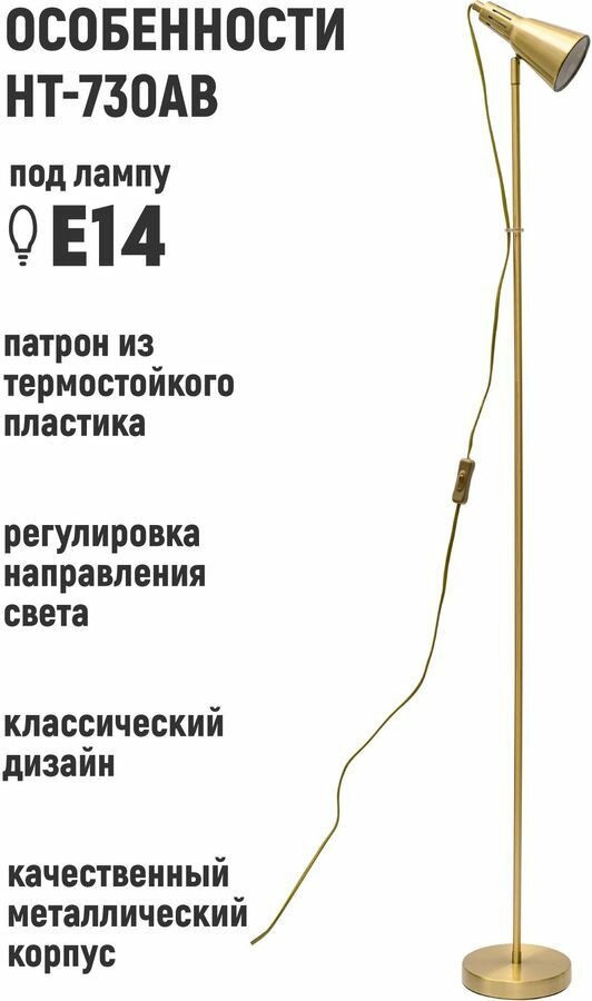 Купить Светильник напольный HT-730AB, ARTSTYLE, латунь, металлический, E14