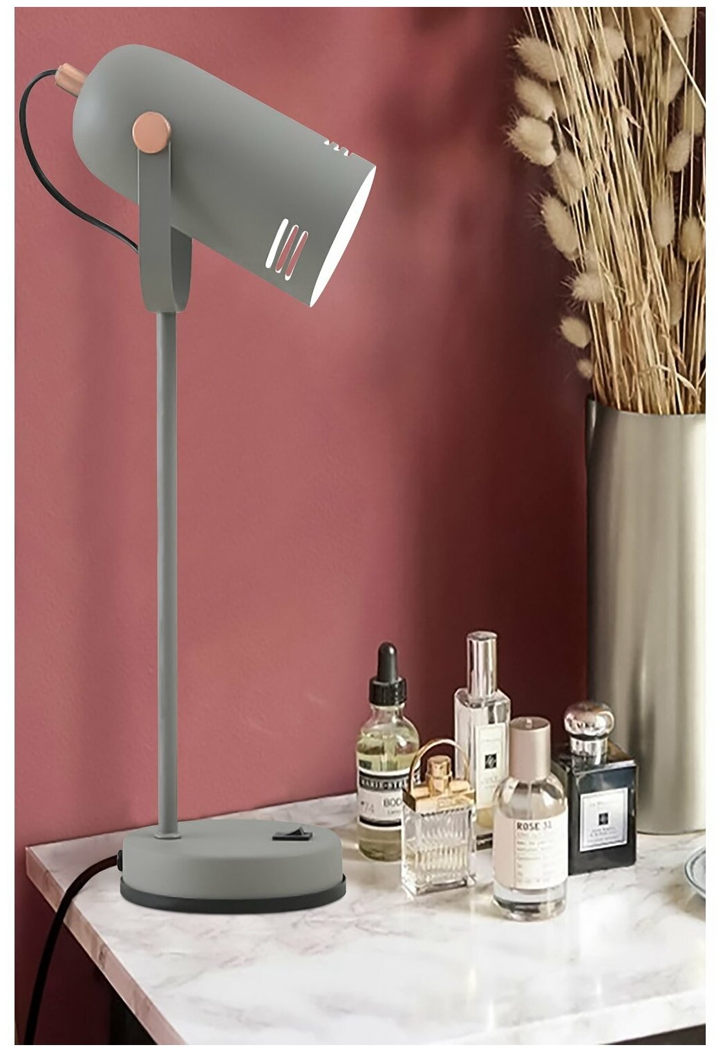Светильник настольный, ARTSTYLE, HT-705GYRC, под лампу c цоколем Е27, для детской, кабинетов и офисов, серый/медь, металлический. интересное: