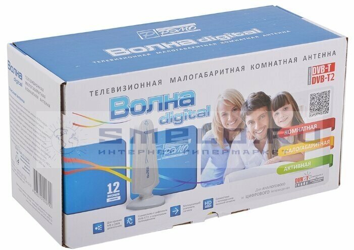 Купить Антенны ТВ Рэмо Антенна комнатная РЭМО BAS-5102-DX волна DIGITAL (активная, 5V, DVB-T2, с б/п, 20-24 дБи, коробка)