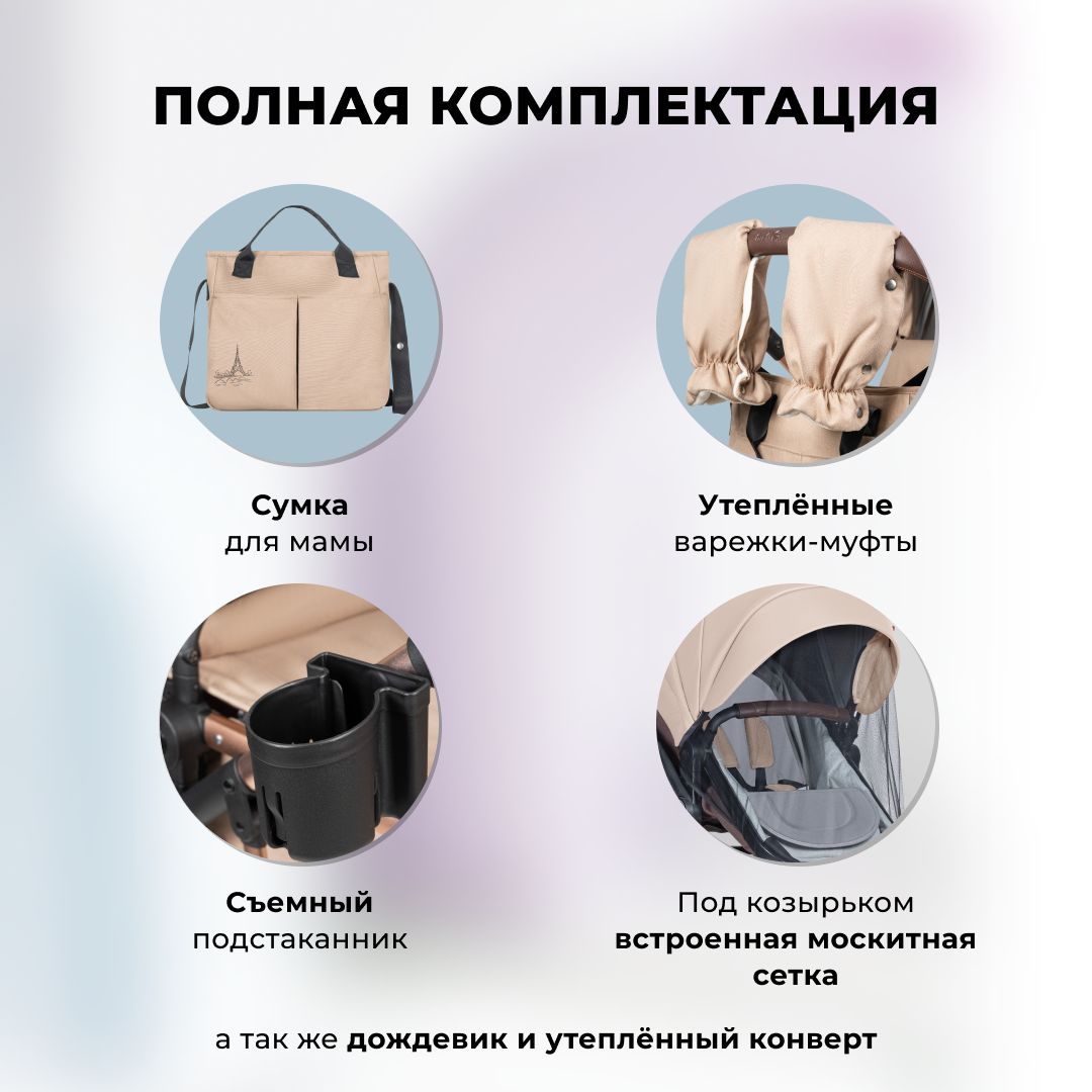 | Аксессуары в комплекте | сумка, накидка на ноги, дождевик, теплый конверт, антимоскитная сетка, подстаканник |