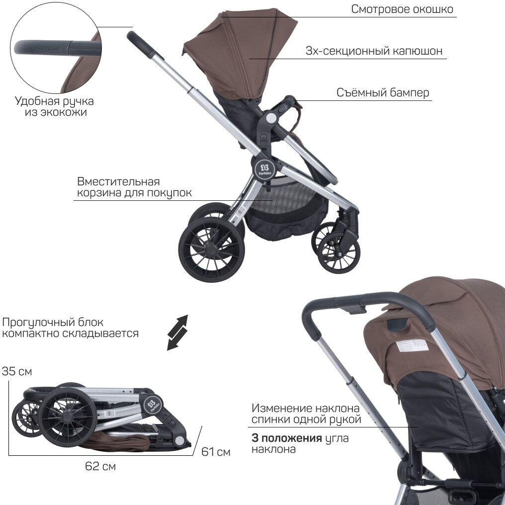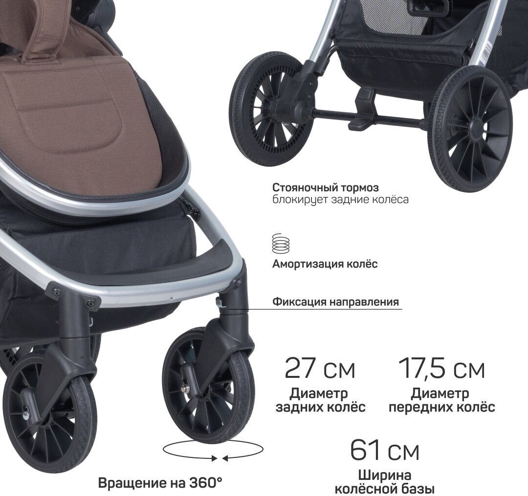 Коляска модульная 2 в 1 Farfello Baby Shell / BBS / цвет шоколад / BBS-16 интересное:
