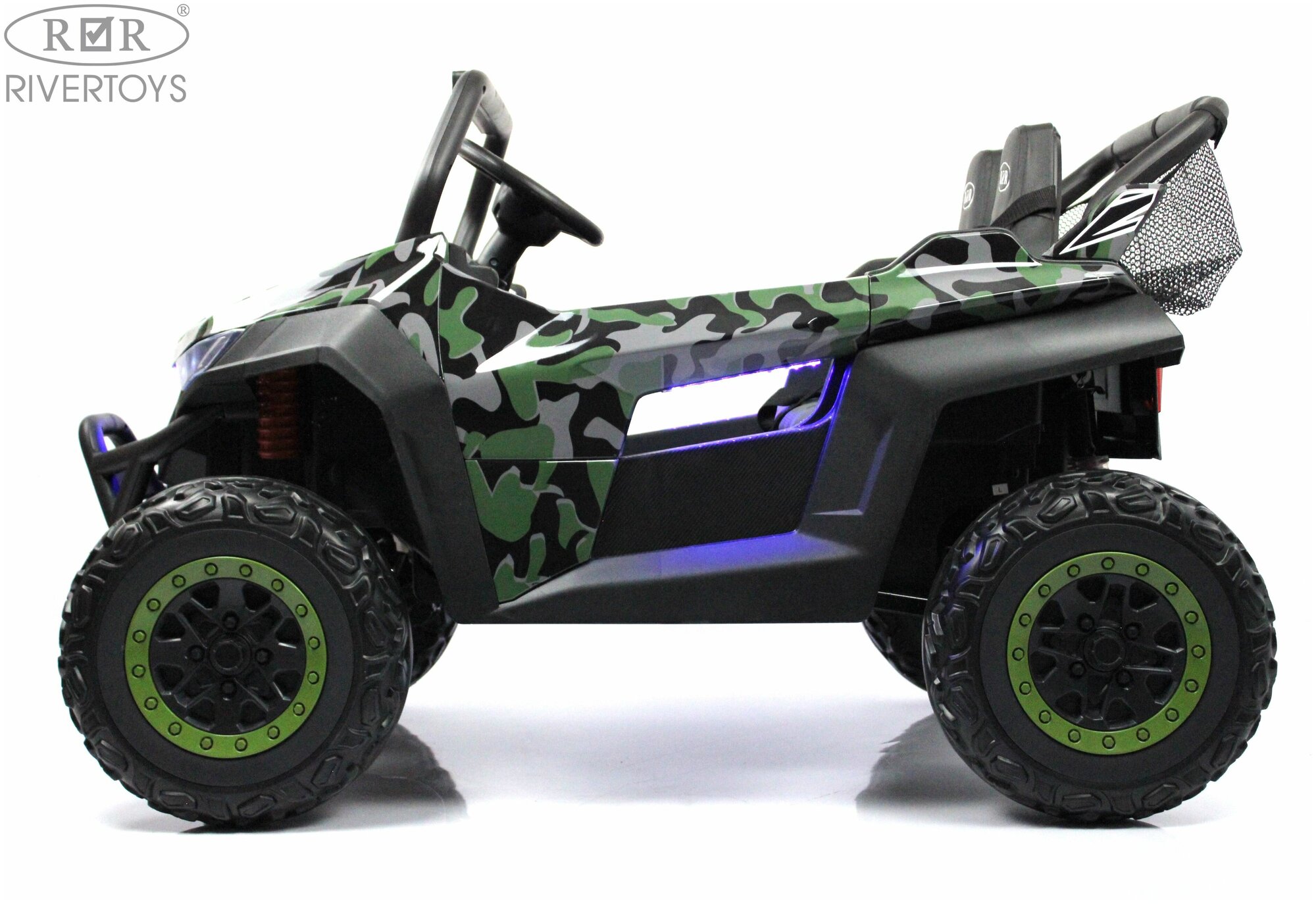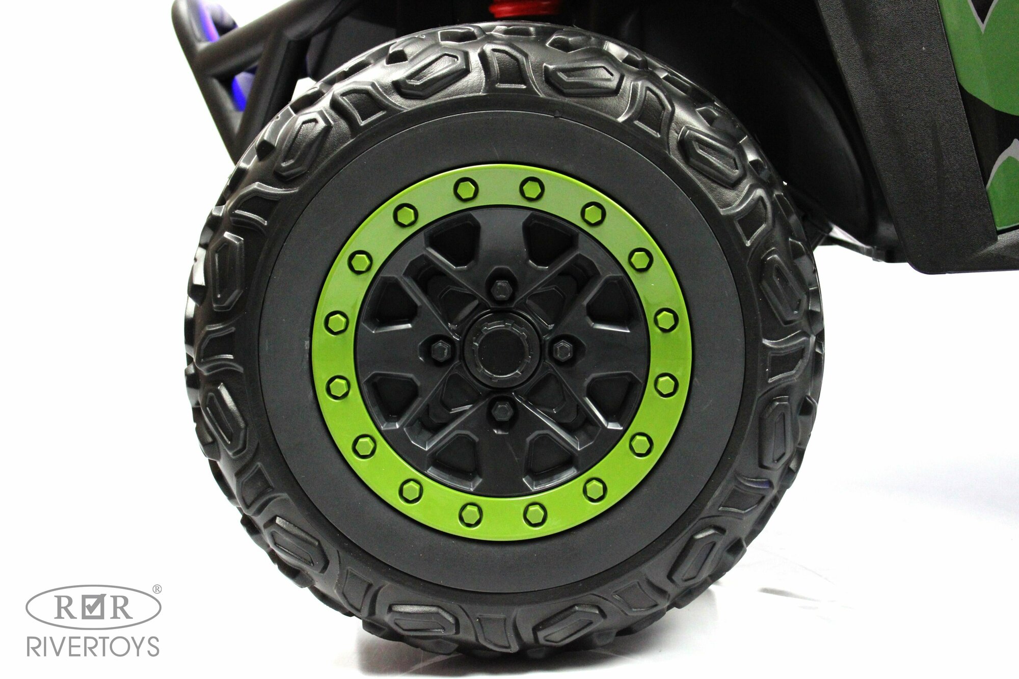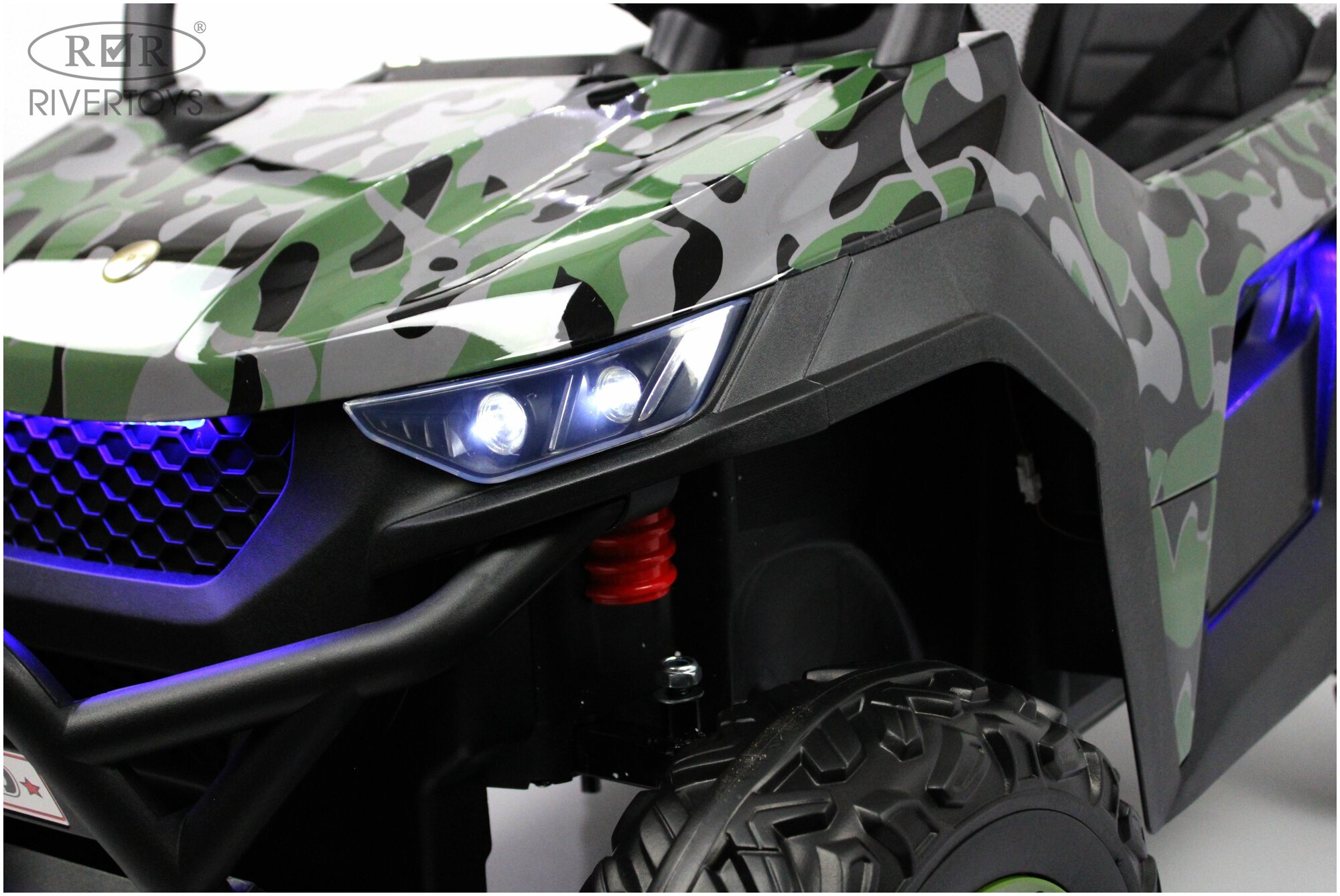 Купить Детский двухместный электромобиль RiverToys T777TT 4WD зеленый камуфляж