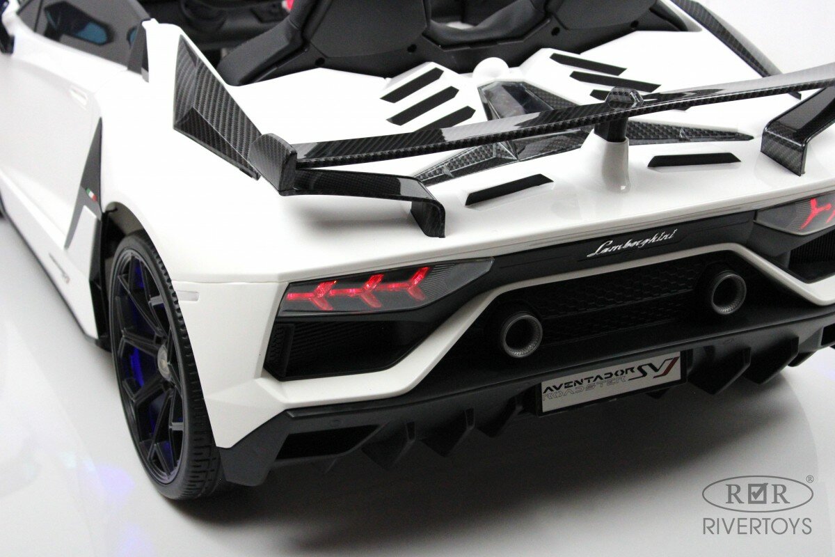 Детский электромобиль Lamborghini Aventador SVJ (A111MP) белый (RiverToys), двухместный, с пультом