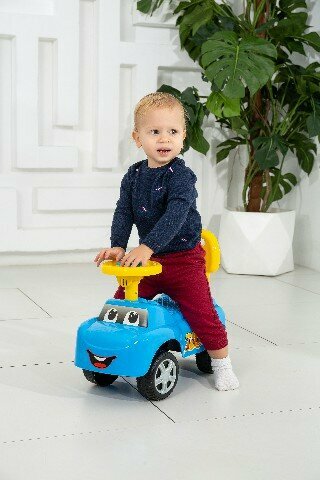 | Плюсы: | Синий цвет. То что нужно для мальчика. Простая сборка. Эргономика для малыша 1-го года в самый раз. Руль рабочий. Звуковая оснастка радует. Наклейки добавляют живости машинке. Пластик прочный. Сидушка удобная. |
