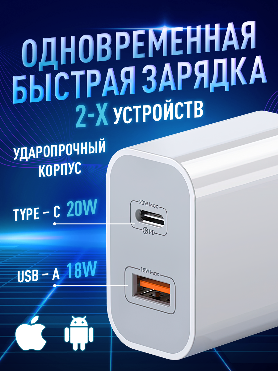 | Плюсы: | Быстрая зарядка, 2 порта |