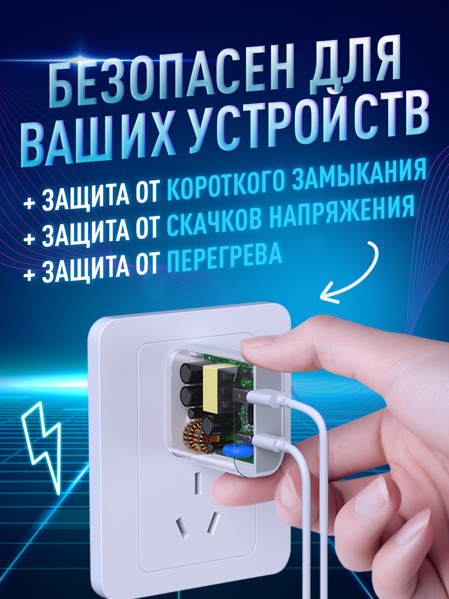 | Плюсы: | Поддерживает быструю зарядку - iPad Pro 12,9” заряжается с 10 до 100% за 1 ч. 45 мин.