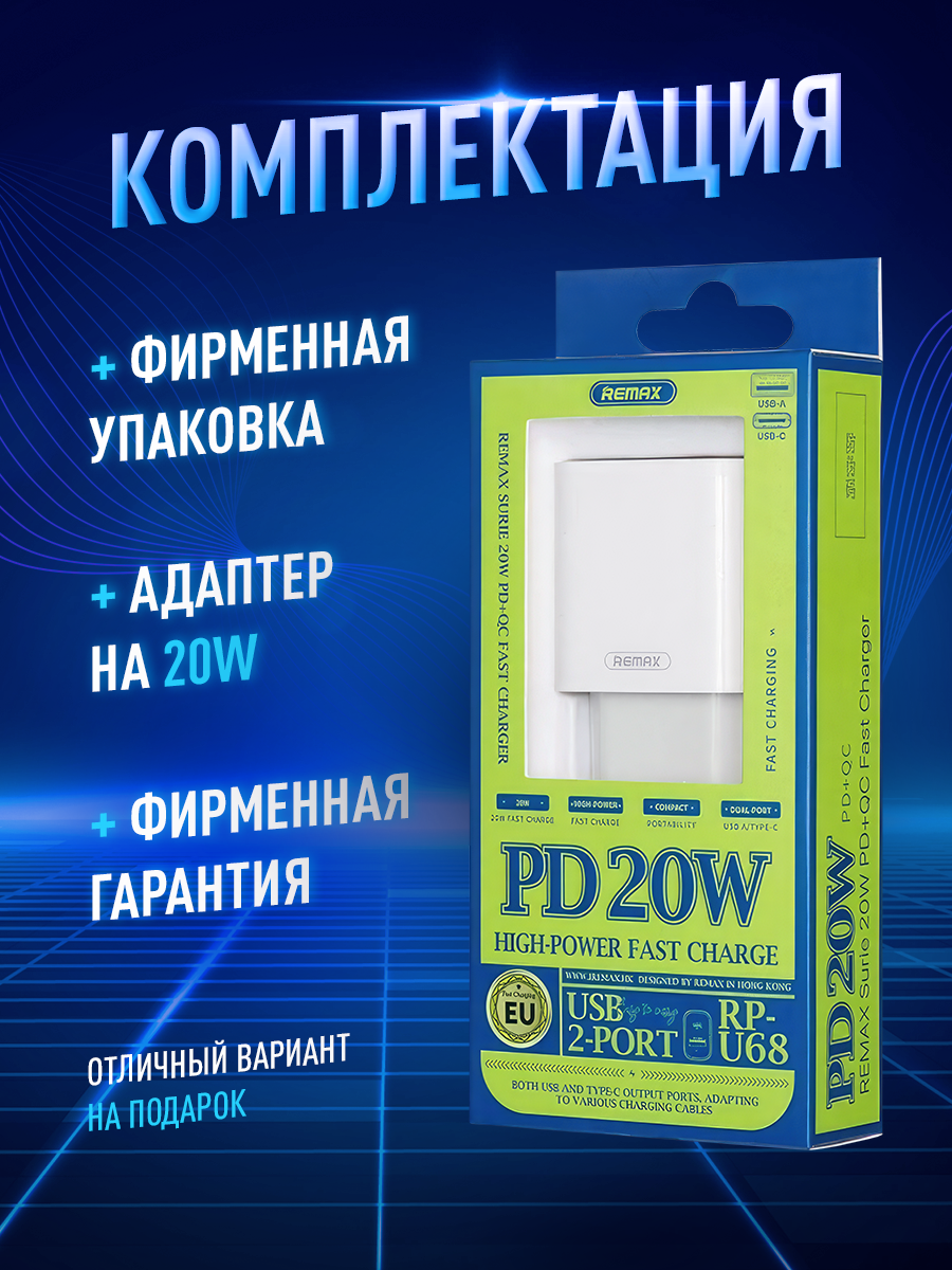 | Подробная комплектация | Сетевое ЗУ, упаковка |