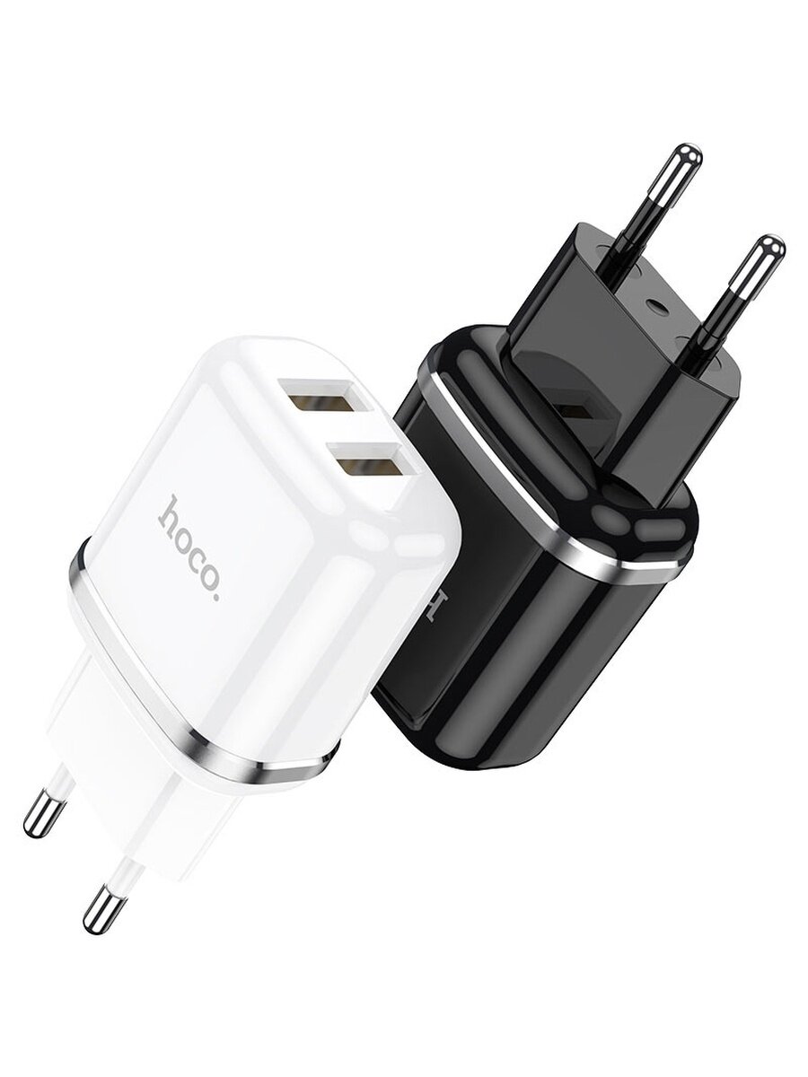 Сетевое зарядное устройство, 2 USB 2.4A 12W (N4), HOCO, Type-C, Умная зарядка, черный
