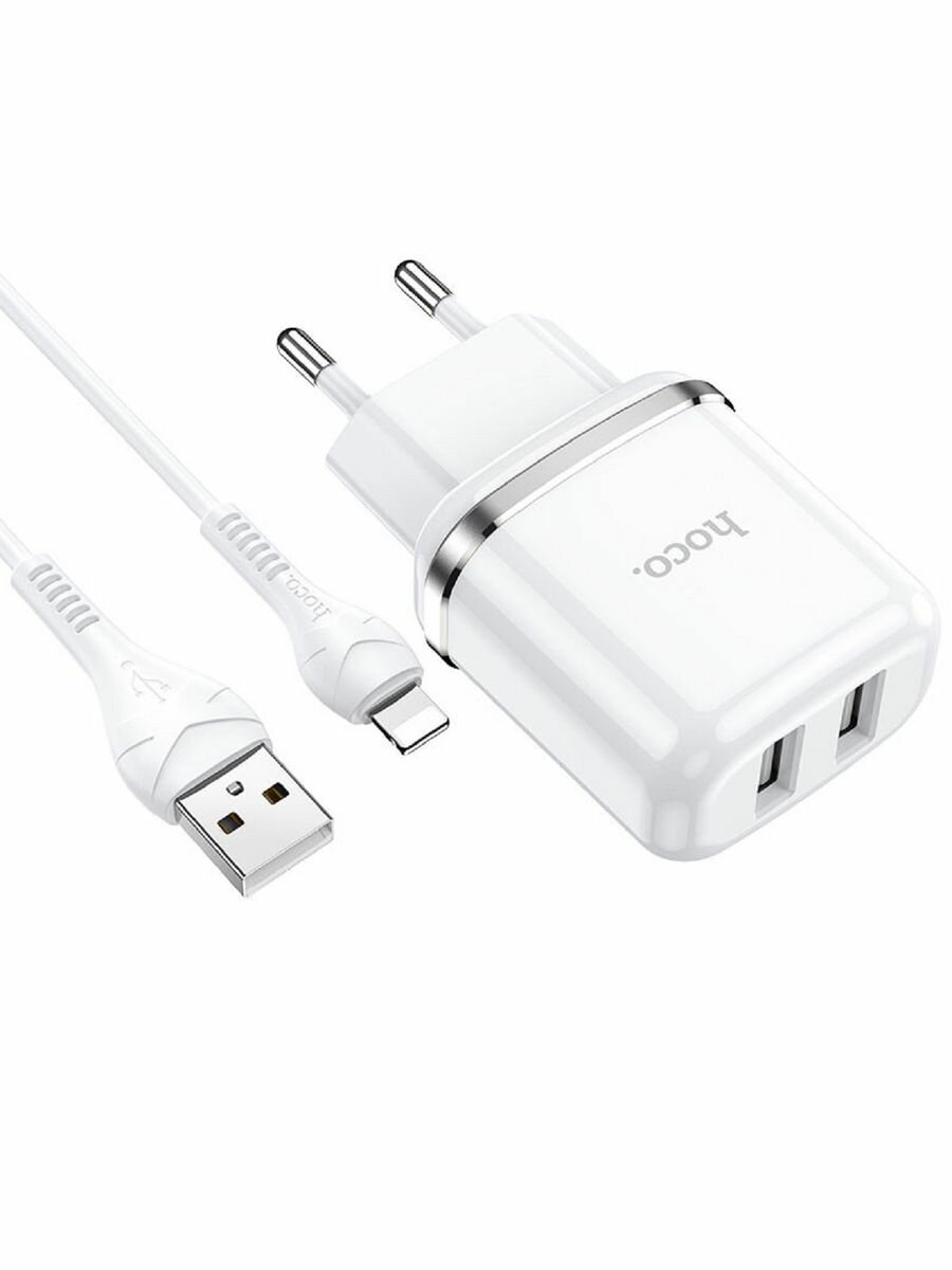 Hoco Сетевое зарядное устройство Hoco N4, 2 USB - 2.4 А, кабель Lightning 1 м, белый