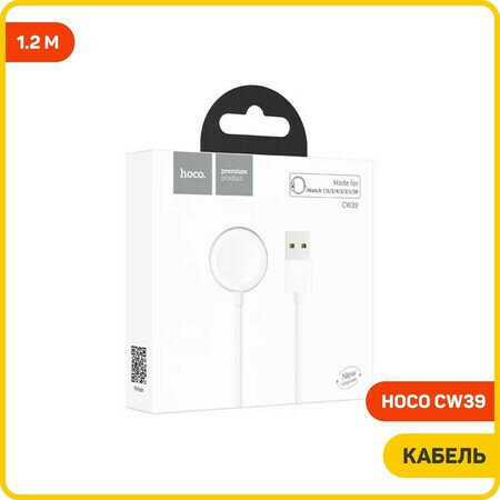 Беспроводная зарядка для Apple Watch series 1-7/SE, Hoco CW39 c кабелем USB-A, 1.2 м, Белый