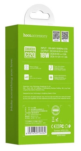 СохранитьЗарядное устройство Hoco C12Q Smart 1xUSB 3A 18W QC3.0 / QC2.0 White интересное: