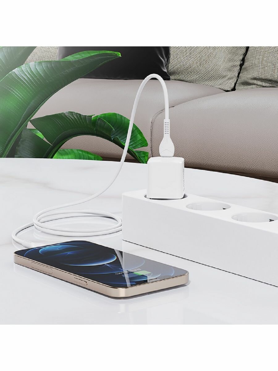 Блок питания сетевой Type-C HOCO, N10, пластик, PD20W, QC3.0, кабель Type-C, 8-pin 1.0м, цвет: белый