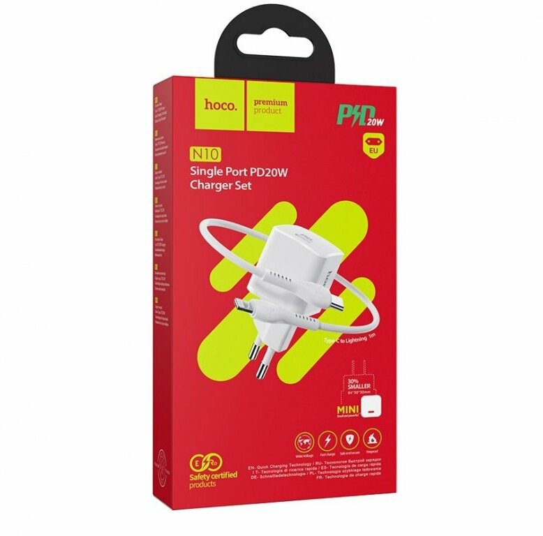 Сетевое зарядное устройство + кабель для iP Lighting to Type-C HOCO N10 PD 20W белый
