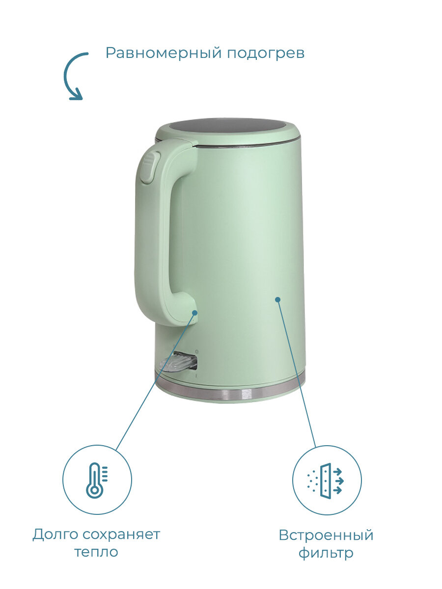 | Особенности | двойные стенки / вращение на 360 градусов / индикатор уровня воды / фильтр / отсек для хранения шнура |