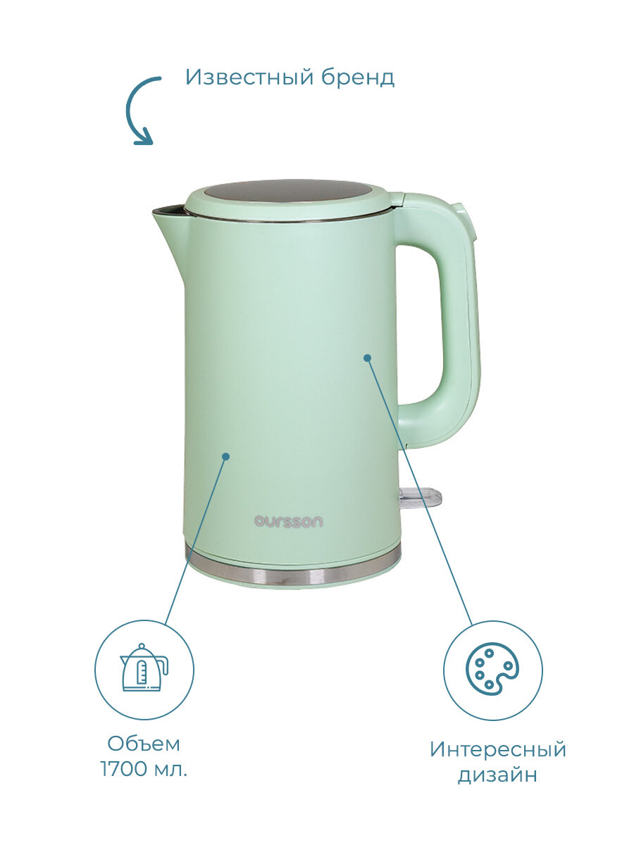 Чайник электрический OURSSON EK1731W/PM, мятный