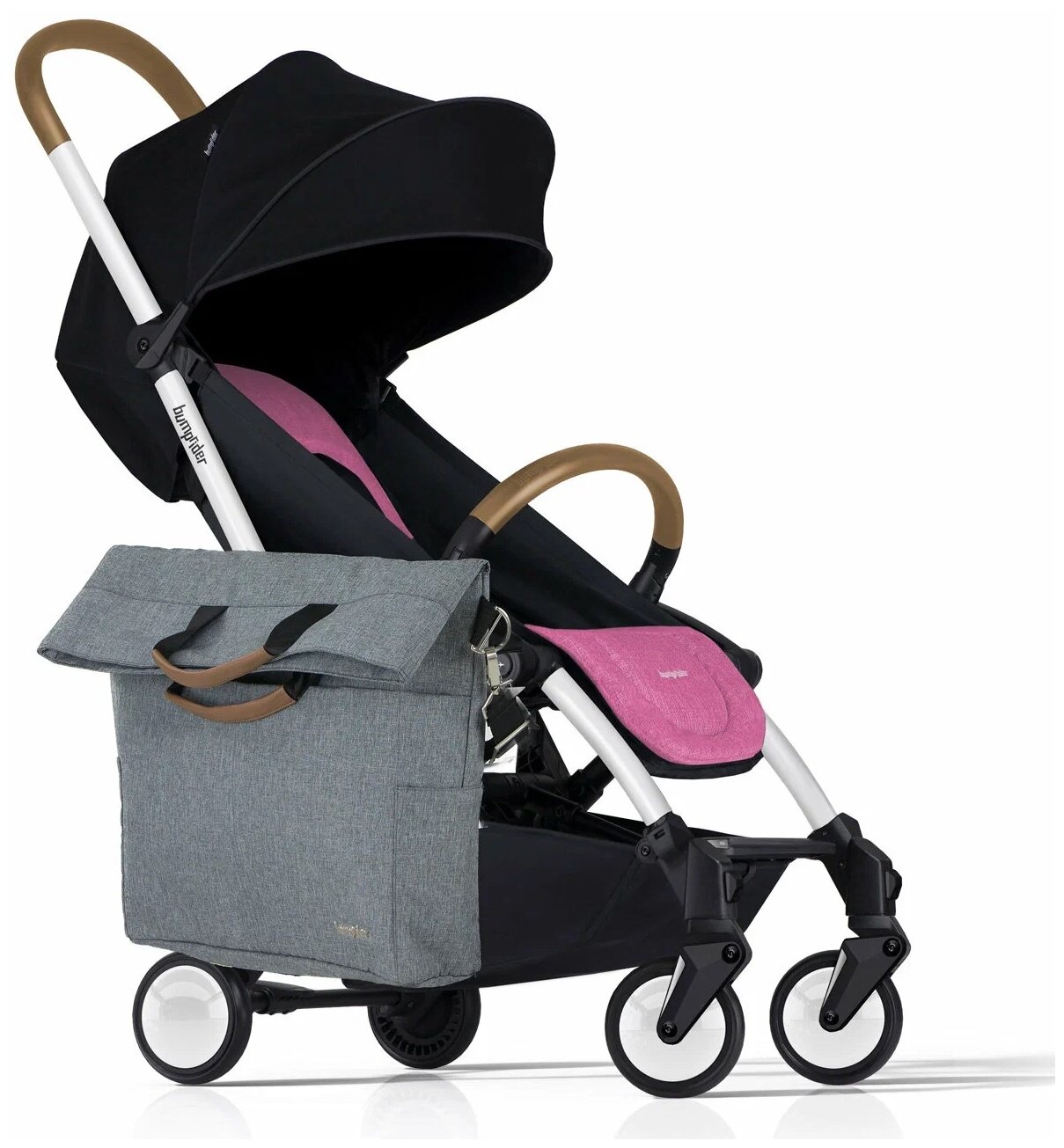 Купить Прогулочная коляска Bumprider Connect 2 White Pink с бампером, дождевиком и серой сумкой для мамы