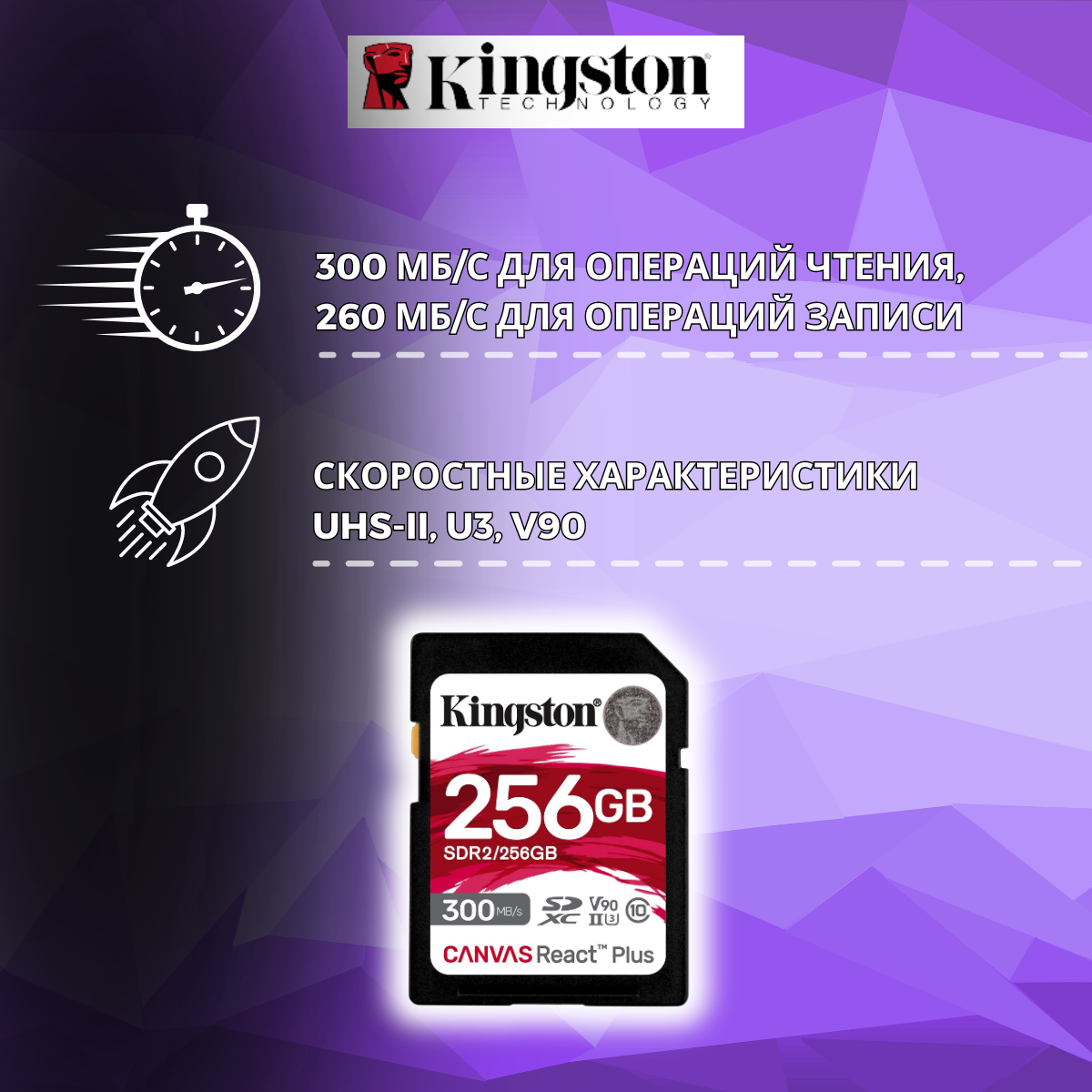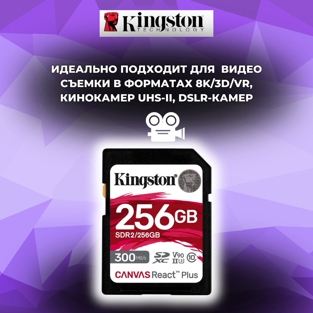 Флэш карта Kingston SDR2 256 ГБ Canvas React Plus SD , Совместимость с UHS-II 4K/8K