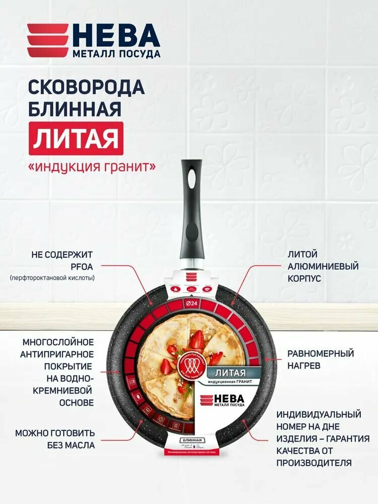 Нева металл посуда L186224i блинная а/пр литая 24см индукция Гранит 550000527