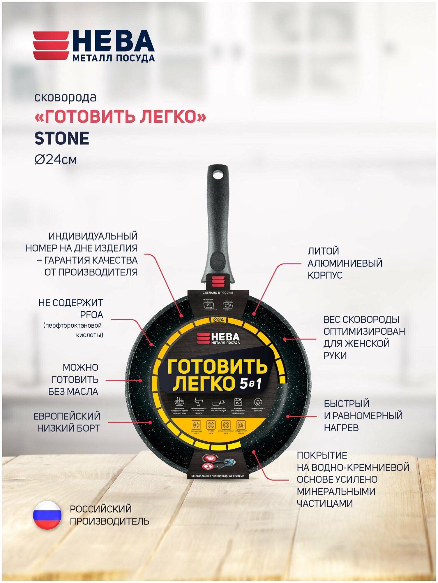 СохранитьСковорода Нева Металл Посуда НМП "Готовить легко" stone 24 см (GL2124) интересное: