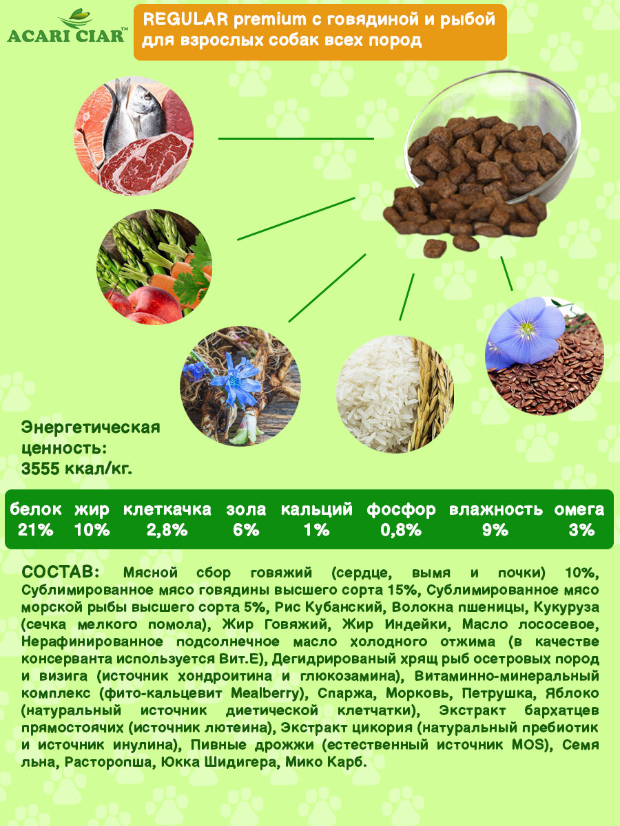 Сухой корм для собак премиум класса Acari Ciar Regular Premium 3,5 кг M (медиум гранула) Акари Киар