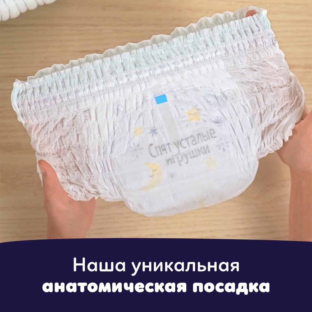 Пользуемся подгузниками- трусиками уже давно. Вышла новинка, решили попробовать и не разочаровалась. Дети спят в них всю ночь и не просыпаются. Наши девочки очень чувствительны к влажности, сразу появляются опрелости. В этих трусиках им комфортно, сухо. Сами трусики мягкие, посадка комфортная, резиночки эластичные. Животики и ножки не пережимаются и нет натертостей. Хорошее качество, нам понравились.
