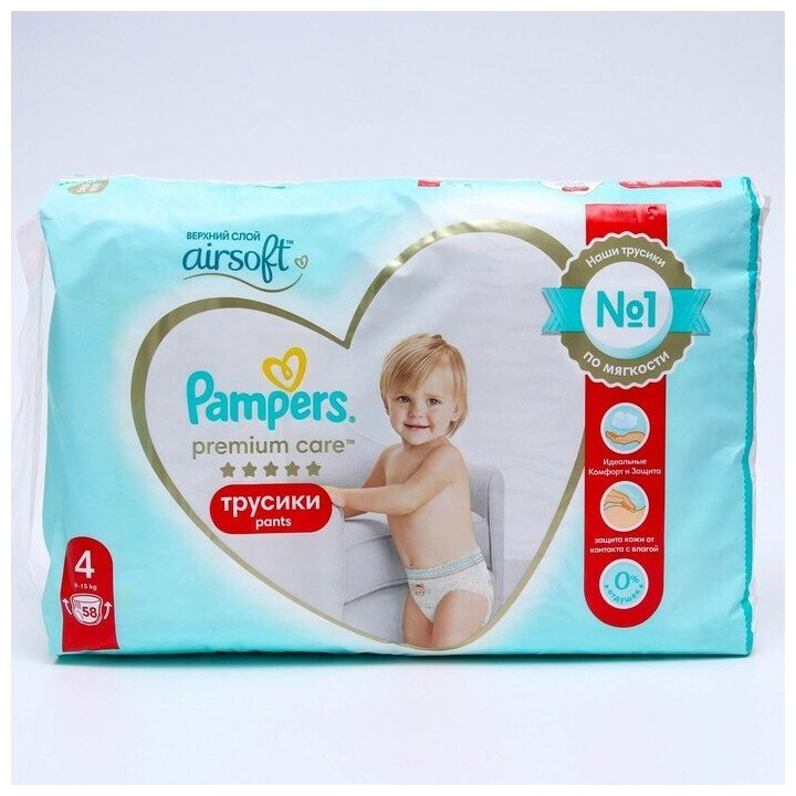 Трусики Pampers Premium Care размер 4, 58 шт. 9-15кг1543944