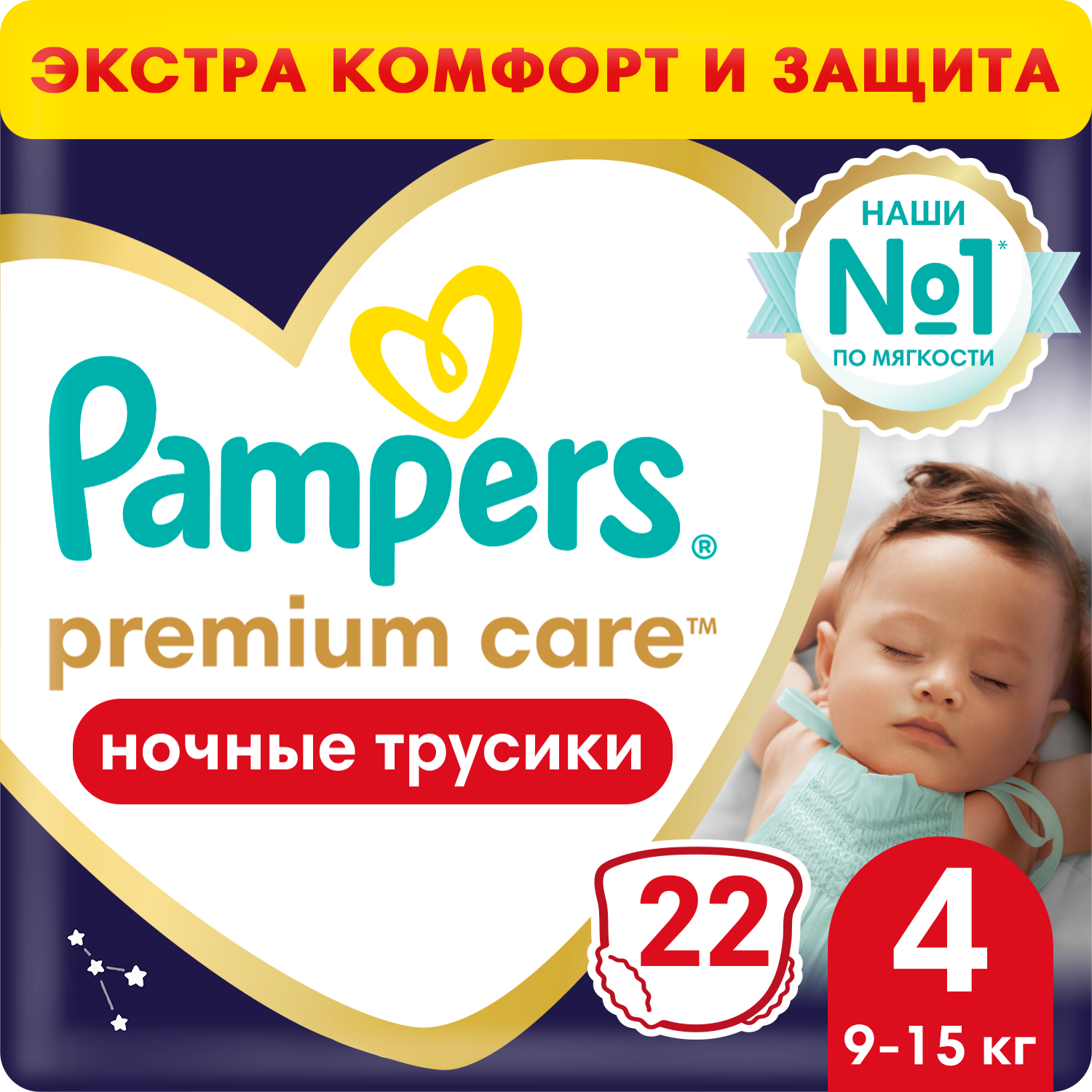 Купить Pampers Premium Care Ночные Трусики Размер 4, 22 Трусиков, 9кг-15кг