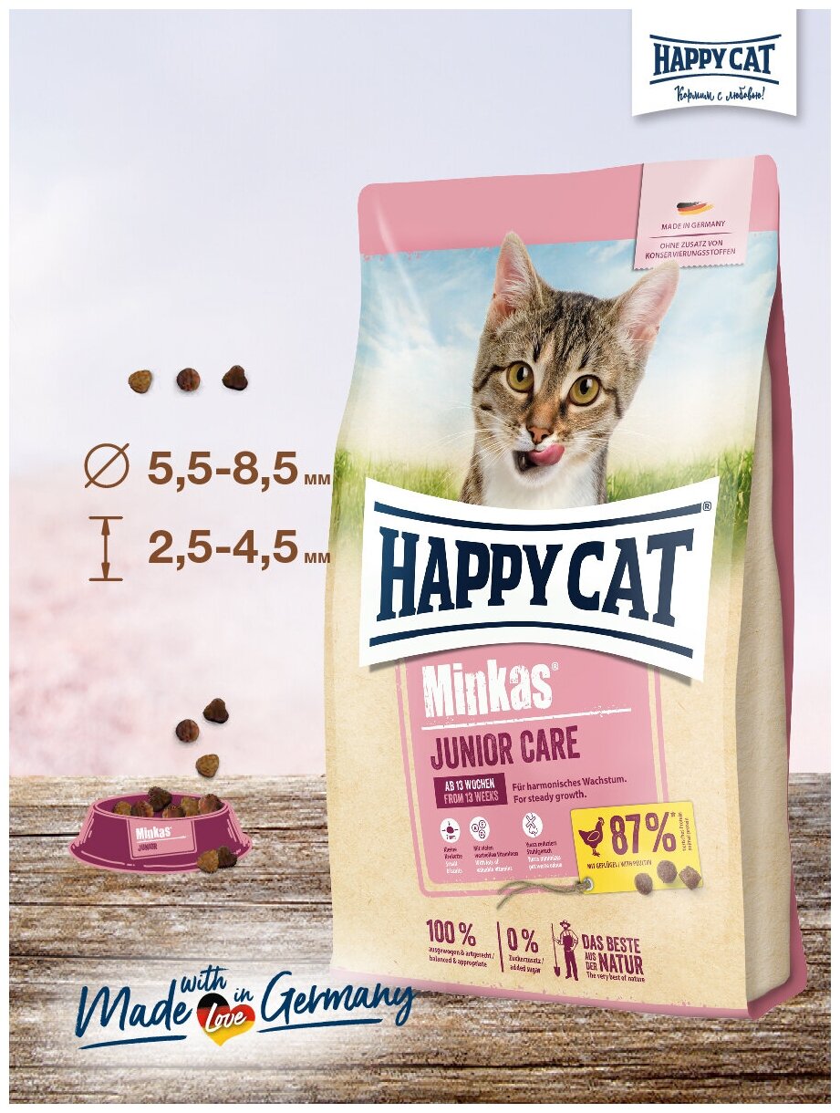 Купить Корм сухой Happy Cat Minkas Junior Care для любых котят с 4 месяцев 1,5 кг