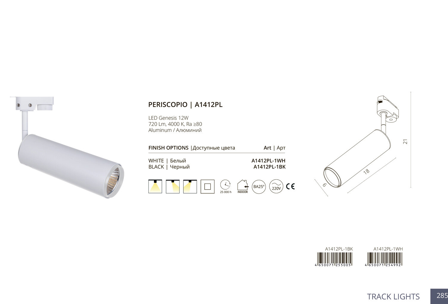 Однофазный трековый светильник светодиодный Artelamp Periscopio Artelamp A1412PL-1BK