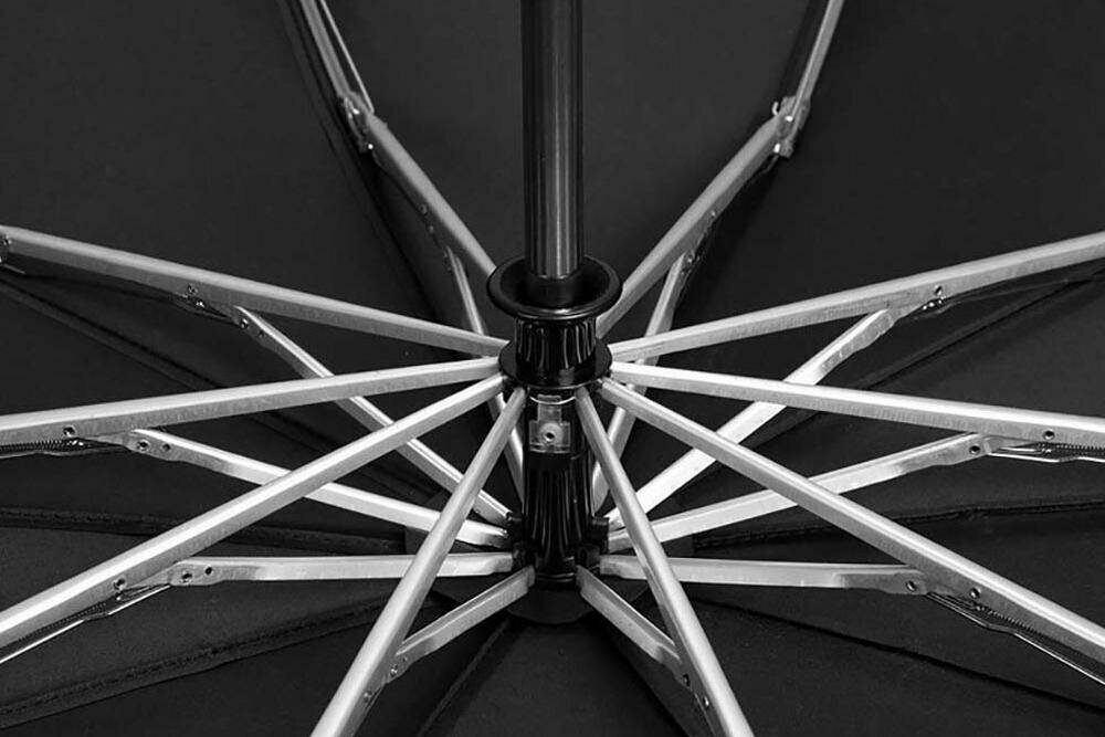 | Плюсы: | Продуманное устройство складывания, при складывании зонта над собой вода не попадает на тебя. |