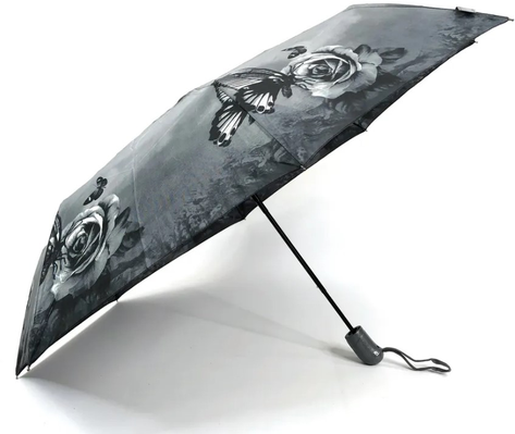 Зонт BETA, автоматический, складной, женский, арт. F 1903 A, однотонный с серыми розами и бабочками интересное: