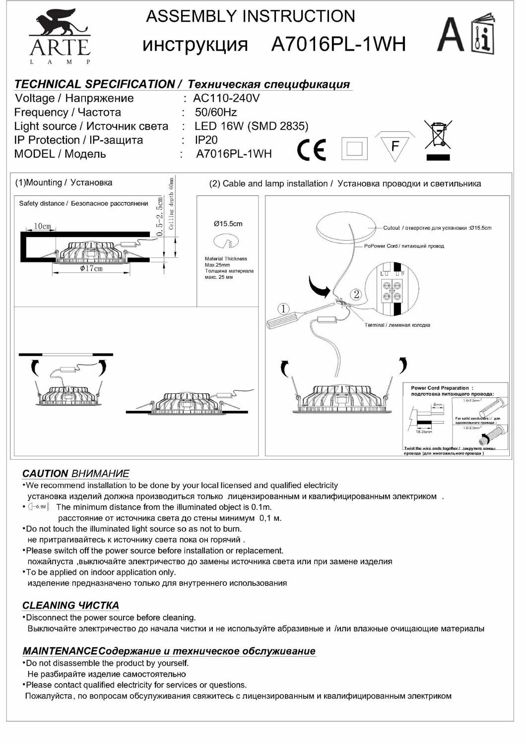 | Комплектация | Встраиваемые светильники Arte Lamp A7016PL-1WH |
